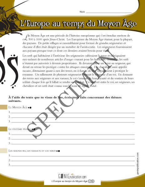 L'élève doit lire un texte sur le Moyen âge avant d'en dégager les faits principaux.