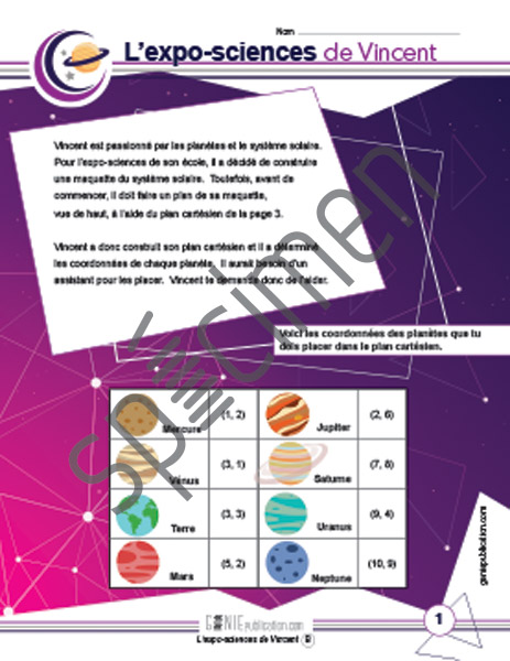Activité dans laquelle l'élève construit un plan cartésien pour représenter le système solaire.