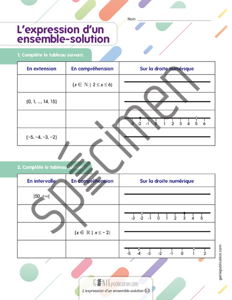 L'élève doit exprimer divers ensembles-solutions avec les notations.