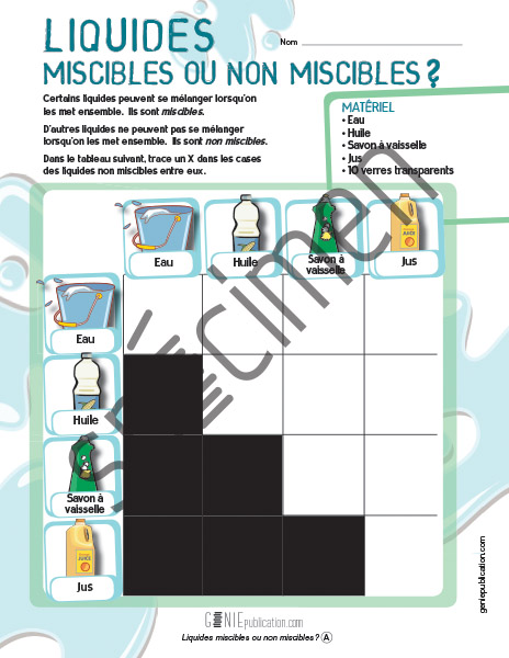 L'élève doit distinguer un mélange de liquides miscibles d'un mélange de liquides non miscibles.