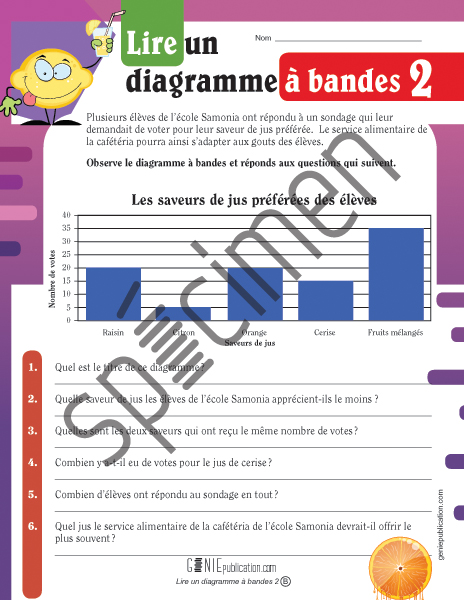 L'élève doit observer un diagramme à bandes et répondre à des questions s'y rapportant.