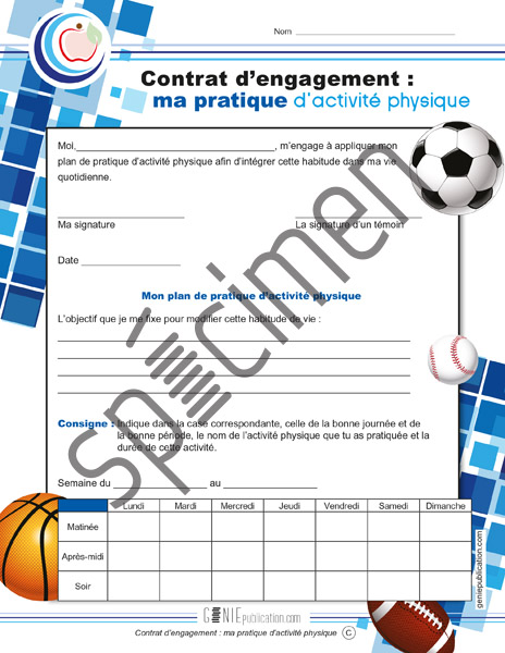 Document que l'élève doit remplir en notant les activités physiques pratiquées au cours d'une semaine.