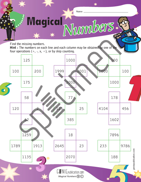 L'élève doit trouver les termes manquants des tableaux en utilisant les quatre opérations.
