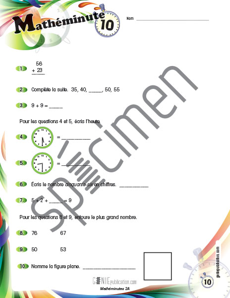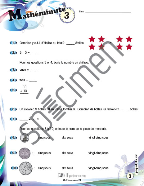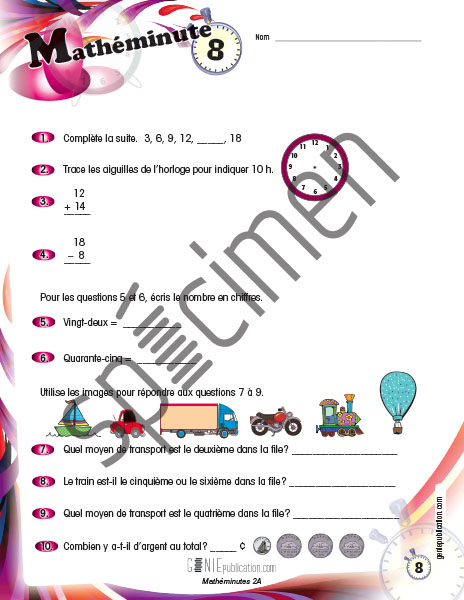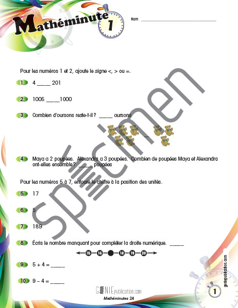 Les mathéminutes constituent un exercice court et amusant qui peut être réalisé au quotidien par l'élève afin d'améliorer sa compréhension des mathématiques.