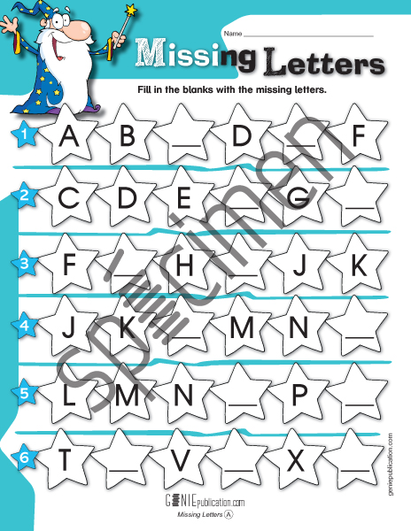 L'élève doit compléter les suites avec les bonnes lettres de l'alphabet.