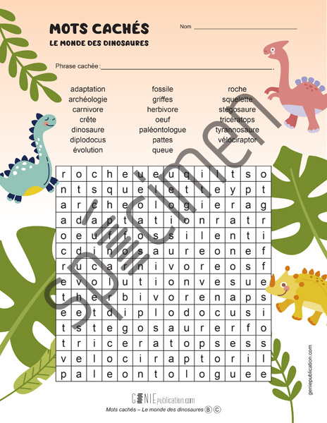 L’élève doit trouver tous les mots de la grille afin de découvrir la phrase cachée.