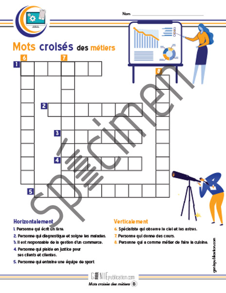 Activité dans laquelle l'élève doit trouver les métiers correspondant à une liste de définitions.