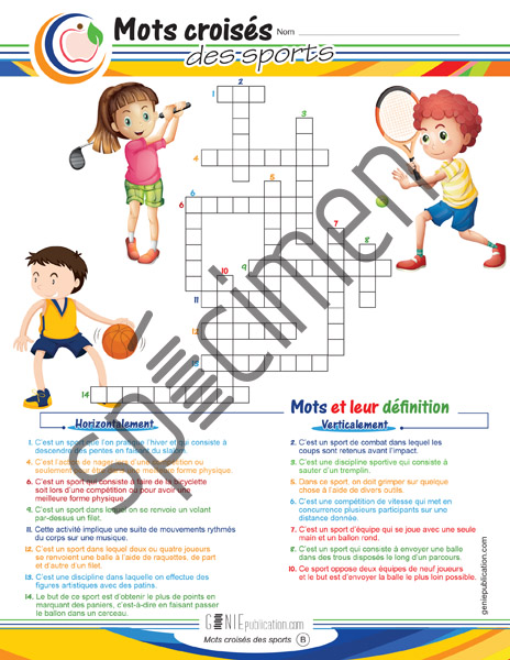 Activité dans laquelle l'élève doit trouver les noms de sports correspondant à une liste de définitions.
