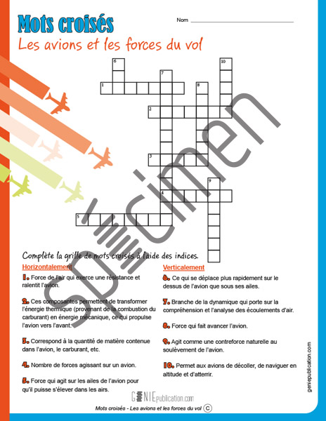 Mots croisés – Les avions et les forces du vol