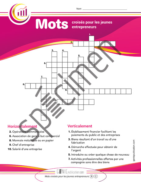 Mots croisés avec des mots de vocabulaire de l'entrepreneuriat.