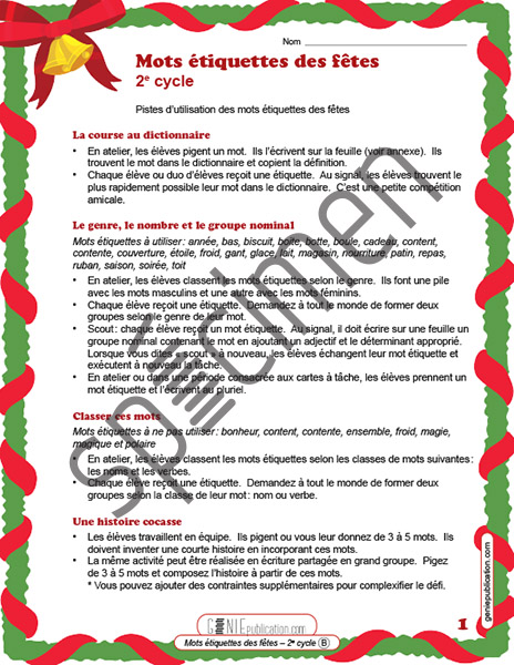 Suggestions d’activités pour utiliser une banque de mots étiquettes sur le thème des fêtes de fin d’année.