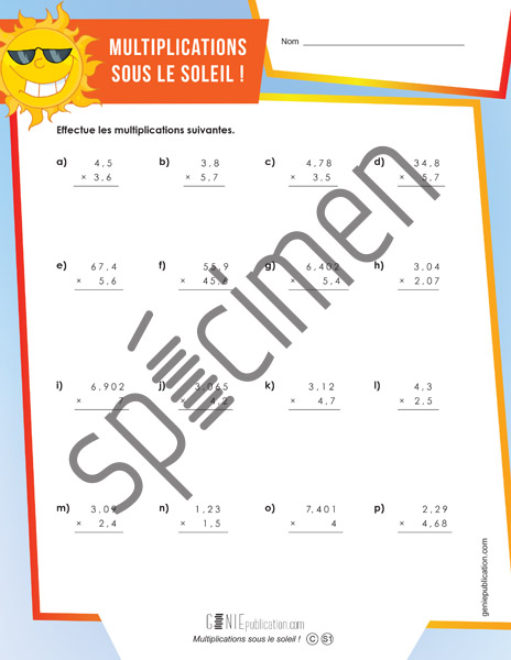 L'élève doit effectuer des multiplications de nombres décimaux.