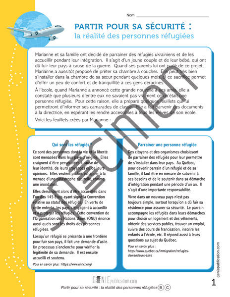 Marianne et sa famille accueillent des réfugiés ukrainiens à leur domicile. Ses camarades de classe lui posent des questions à ce sujet. Elle leur répond par des feuillets informatifs. Dans cette activité, l’élève lit le texte et répond aux questions qui suivent.