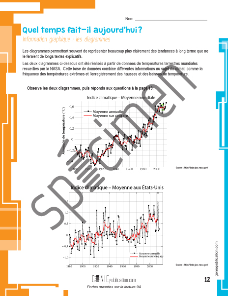 Afin de les préparer aux différentes formes de textes auxquelles ils seront confrontés dans leur vie quotidienne, chaque volume propose aussi une ou des activités de lectures sous forme de graphique. Ainsi, les élèves apprendront à décortiquer des diagrammes, des horaires, des cartes géographiques et plus encore.