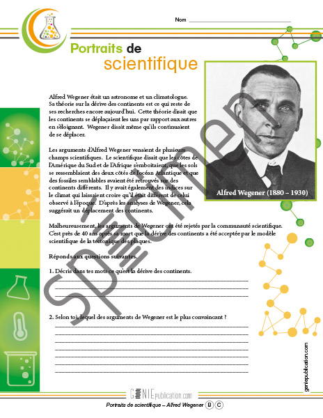La série Portraits de scientifique présente des scientifiques qui ont fait leur marque dans l'histoire. Ce texte porte sur Alfred Wegener et la dérive des continents