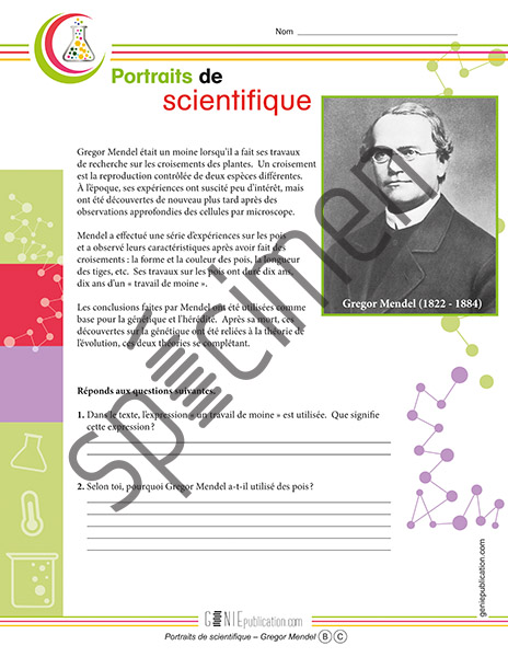 La série Portraits de scientifique présente des scientifiques qui ont fait leur marque dans l'histoire. Ce texte porte sur Gregor Mendel et ses travaux sur la génétique.