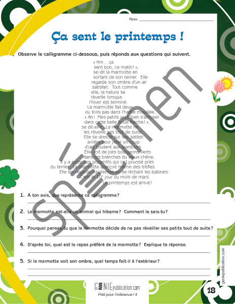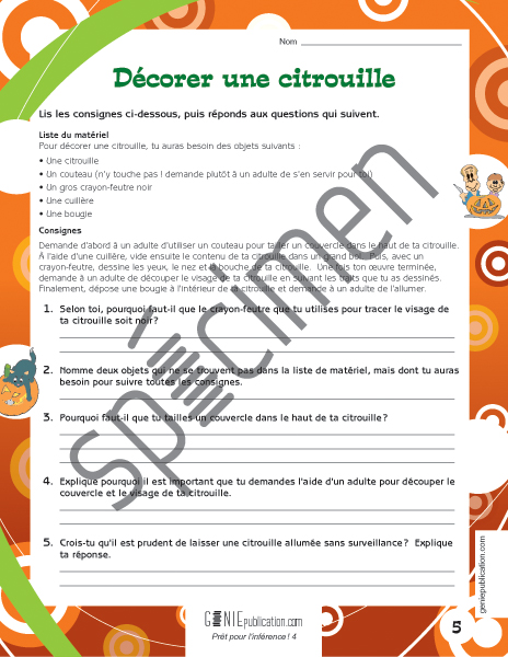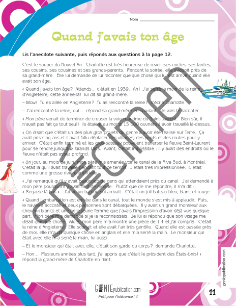 Le recueil Prêt pour l'inférence ! 4 propose 19 activités de lecture axées sur l'inférence logique et pragmatique. Le niveau de difficulté des textes et des questions de compréhension qui les accompagnent est adapté pour des élèves de la 4e année du primaire.