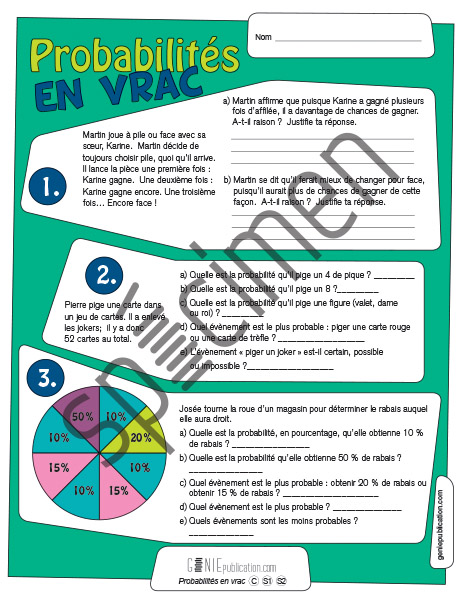 L'élève doit répondre à diverses questions sur les probabilités.