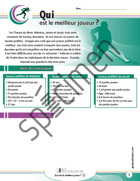 Activité dans laquelle l'élève doit transformer et compiler des statistiques de sport avant de répondre à des questions.