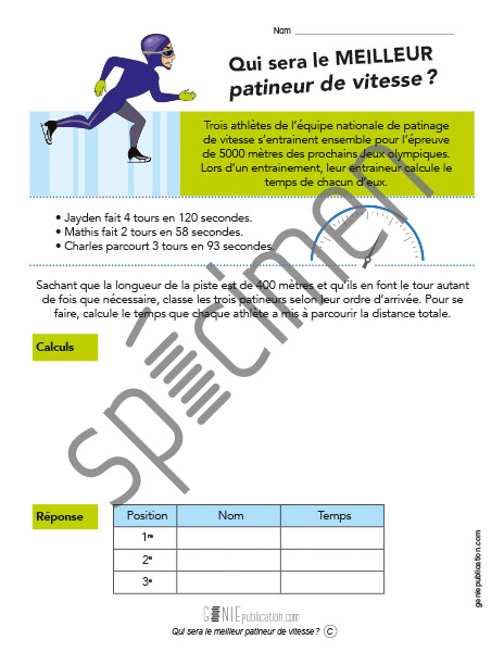 Activité pour déterminer le classement de trois patineurs de vitesse.