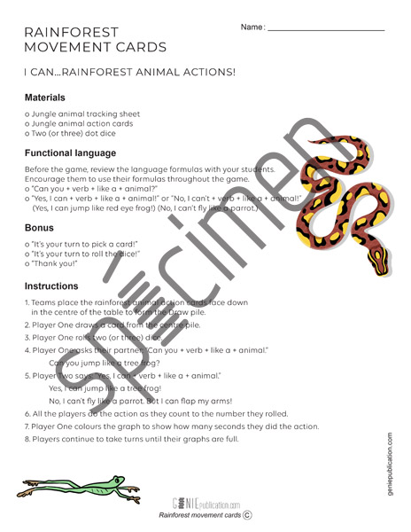 Can you jump like a tree frog or fly like a parrot? Yes, I can jump like a tree frog ! No, I can’t fly like a parrot. But I can flap my arms !