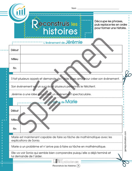 L'élève doit remettre deux histoires sur le thème de l'entrepreneuriat en ordre logique.