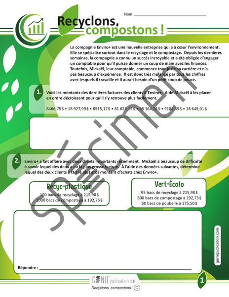 Situation d'application dans laquelle l'élève doit aider le comptable d'une compagnie à faire différents calculs de facture.