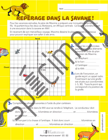 L'élève doit repérer des points dans un plan cartésien pour déterminer leurs coordonnées. Il doit aussi être en mesure de positionner un point dans le plan cartésien.