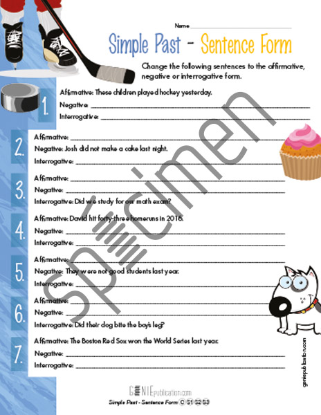 L'élève s'exerce à conjuguer correctement les verbes demandés au simple past dans les formes affirmative, négative et interrogative.