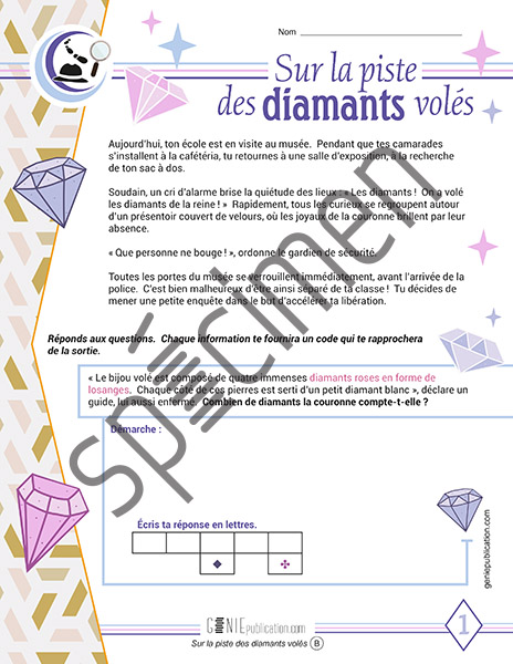 L’élève doit résoudre différentes énigmes de logique, de français et de mathématique pour conclure l’enquête et ainsi pouvoir sortir du musée.