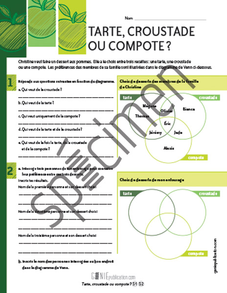 L'élève doit répondre à des questions à partir d'un diagramme de Venn.