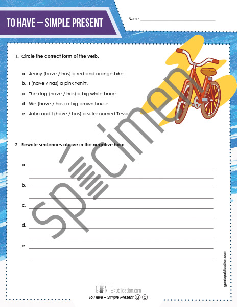 Activité sur le verbe to have au simple present, dans les formes affirmatives et négatives.