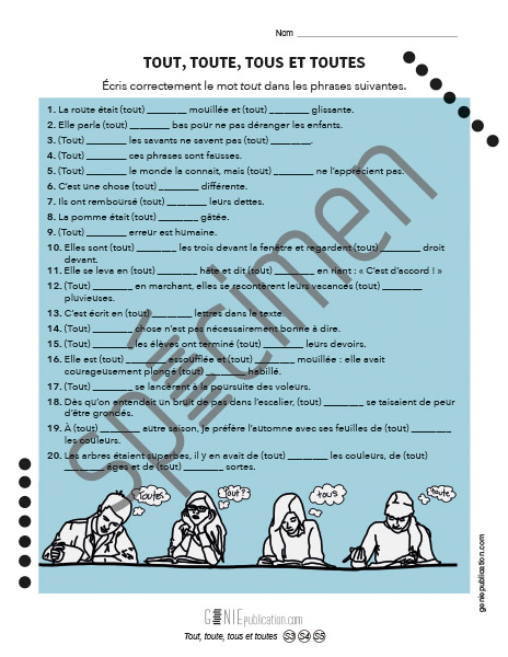 Exercice sur l'orthographe du mot tout dans différents contextes.