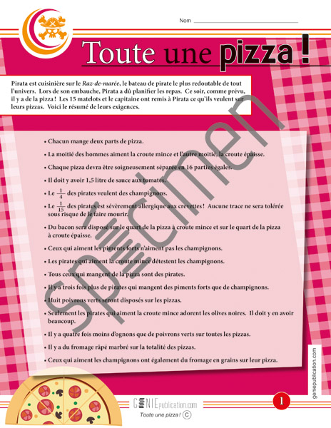 L'élève doit aider Pirata à préparer les pizzas pour les matelots en suivant leurs instructions.