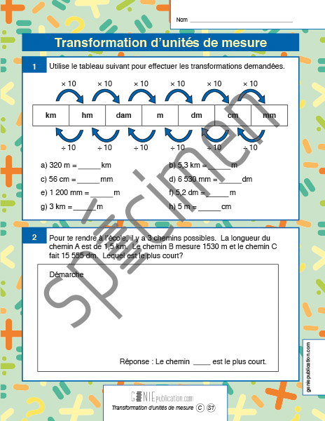 Activité sur le changement d'unités de mesure.