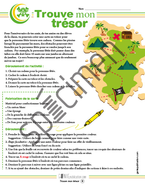 Activité dans laquelle l'élève prépare une carte au trésor pour une personne dont c'est l'anniversaire afin qu'elle trouve son cadeau.