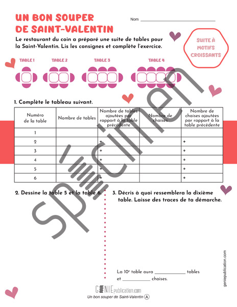 L’élève doit trouver la régularité dans la mise en situation, puis s’en servir pour établir les données manquantes.