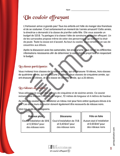 Situation-problème sous le thème de l’Halloween dans laquelle l’élève doit calculer des couts et respecter un budget.