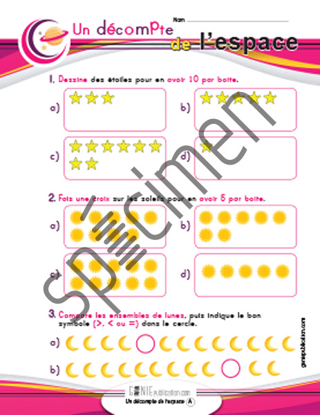 L'élève doit compléter des ensembles, enlever certains articles d'un ensemble, puis comparer deux ensembles.
