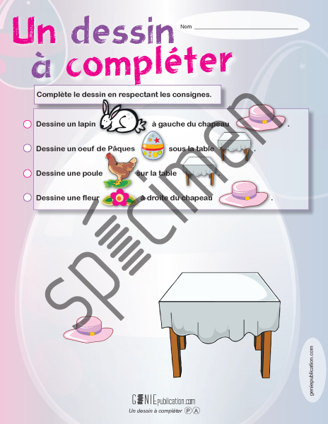L'élève doit utiliser ses connaissances en orientation spatiale afin de compléter le dessin tel que demandé.