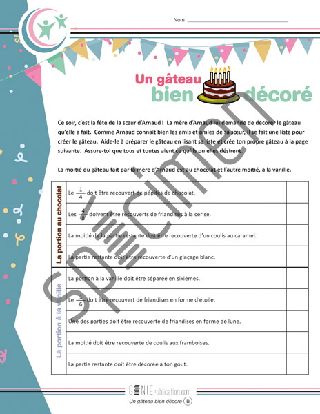 L'élève doit séparer un gâteau selon des indications très précises.