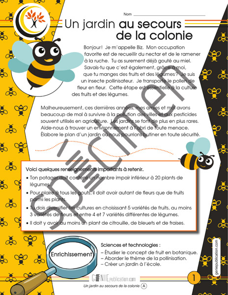 L'élève doit faire un plan d'un jardin pour sauver une colonie d'abeilles.
