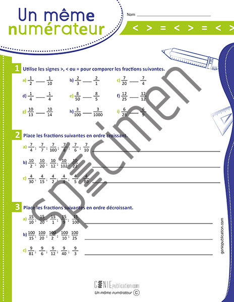 L’élève doit comparer des fractions et en mettre en ordre croissant ou décroissant.