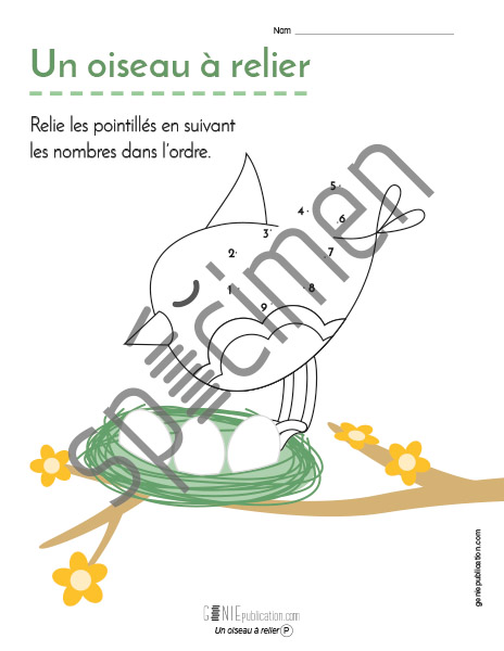Activité de motricité fine dans lequel l'enfant doit relier des chiffres dans le bon ordre avec son crayon.