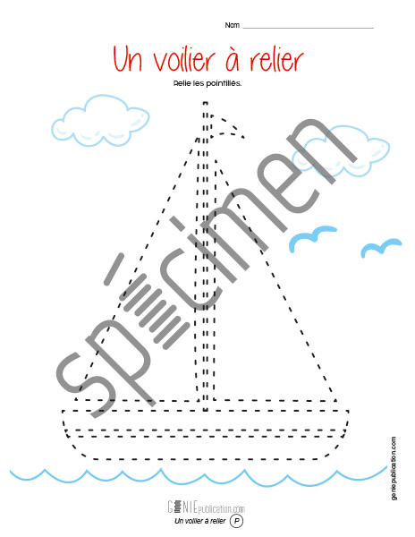 Exercice de motricité fine dans lequel l'enfant doit suivre une ligne pointillée avec son crayon.