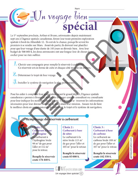 Situation problème dans laquelle l'élève doit aider des personnages à planifier un voyage dans l'espace.