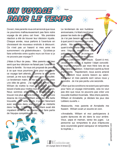 Les parents de Nadia doivent annuler leur voyage de ski annuel et Nadia décide de prendre les choses en main pour créer une nouvelle tradition familiale. Le texte est suivi de questions.