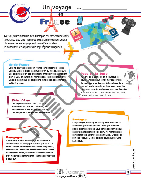 Activité d'inférence sur le thème d'un voyage touristique en France.