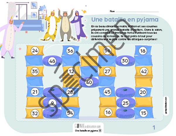 Les élèves doivent trouver le produit des multiplications inscrites sur chacun des oreillers pour atteindre le fort aux bons endroits. L’activité peut se jouer en solo ou en groupe.