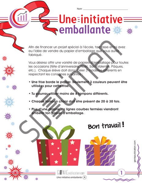 Situation-problème dans laquelle l'élève doit créer 3 papiers d'emballage en respectant des consignes précises.